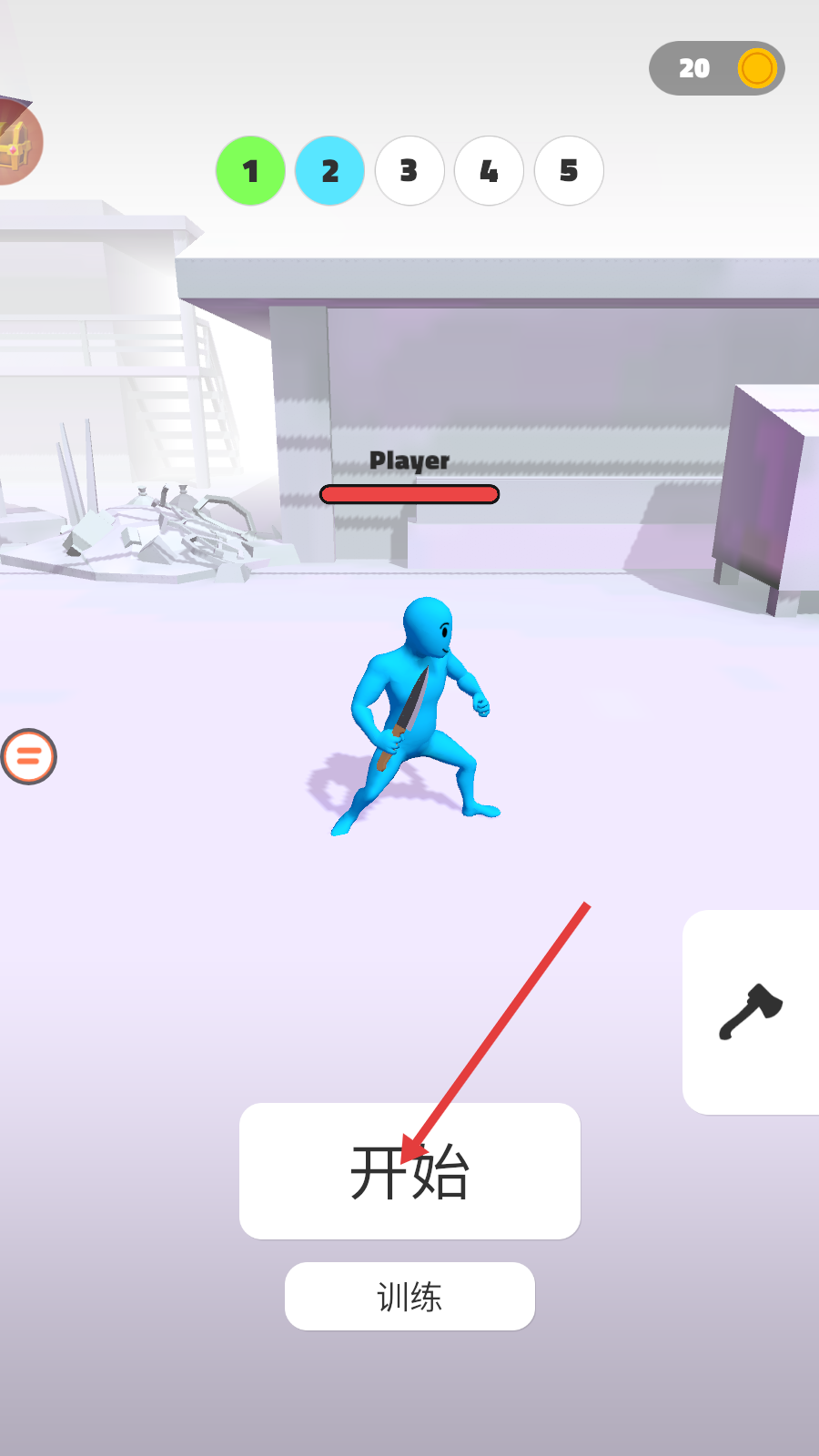 1、点击【开始】按钮,操控持匕首的蓝色角色,进入游戏开启挑战。