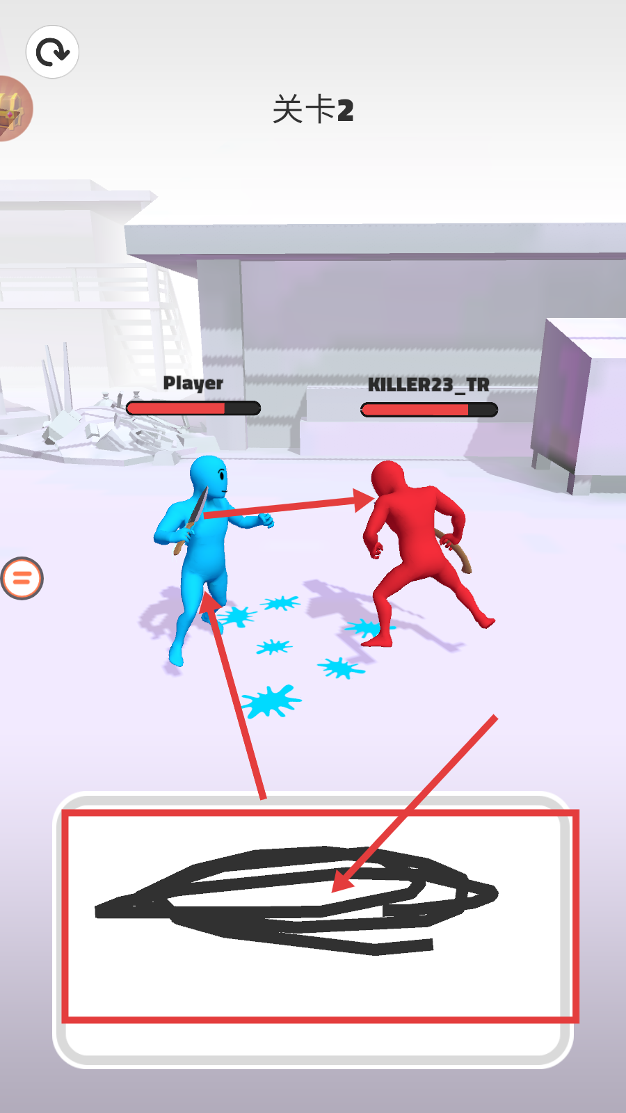 2、在【关卡2】中,面对红色敌人时,可借助下方绘制的形状,辅助与敌人展开战斗。