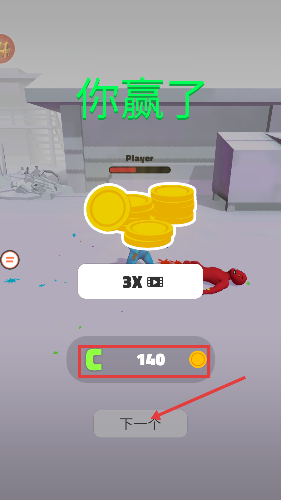 4、成功获胜后,会获得金币奖励,点击【下一个】按钮,可继续挑战后续关卡。