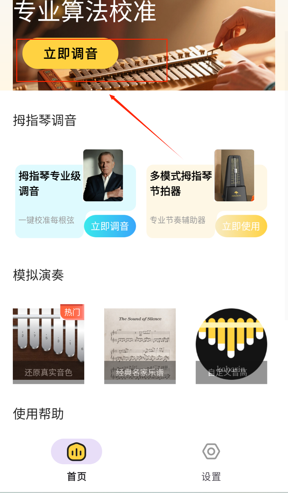 1、打开应用后同意相关协议进入主界面,在首页可看到自动调音与节拍器等核心功能入口,首次使用建议先浏览新手教程掌握基本操作方法。