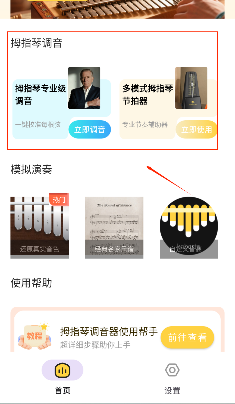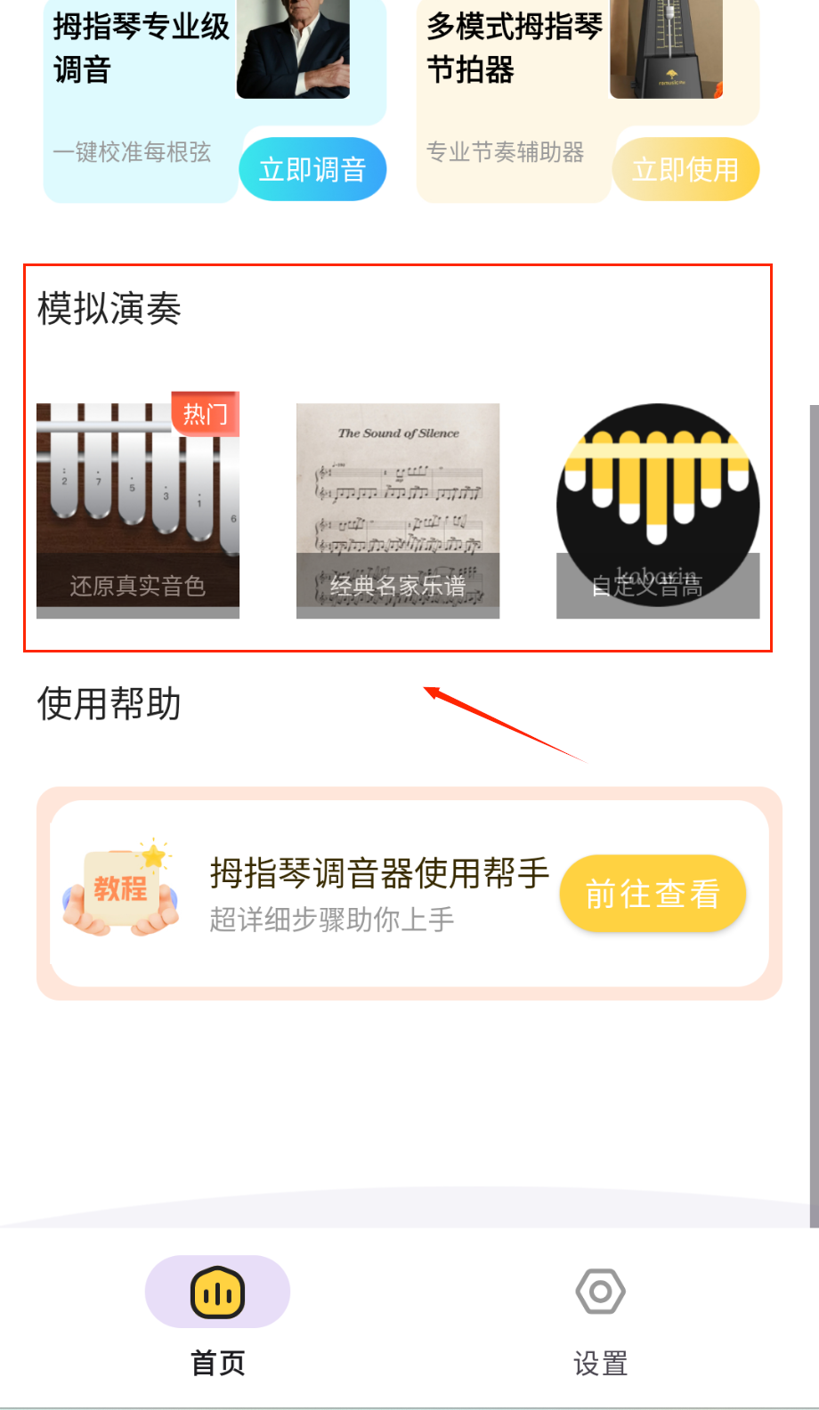 4、模拟弹奏界面内置丰富曲谱资源并可实时发声反馈,用户可通过触摸屏幕琴键进行练习或创作,随时享受拇指琴演奏的乐趣。