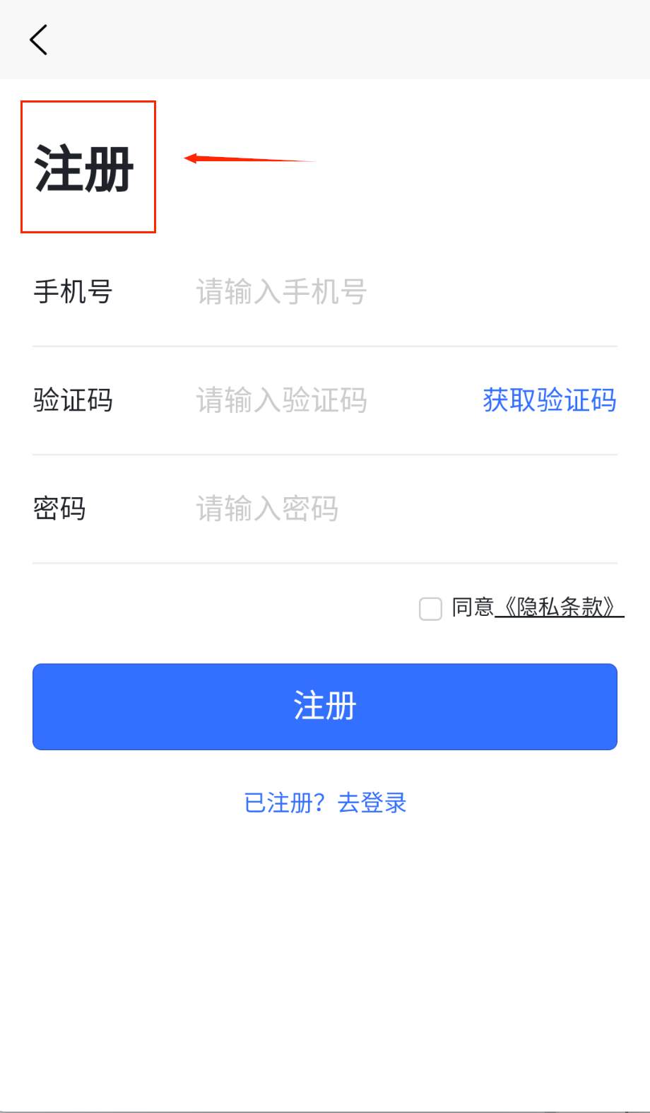 3、 登录账号也很简单。在登录页面,在“手机号”框输入你的号码,在“密码”框输入你设置的密码。同样要记得勾选“同意《隐私条款》”。