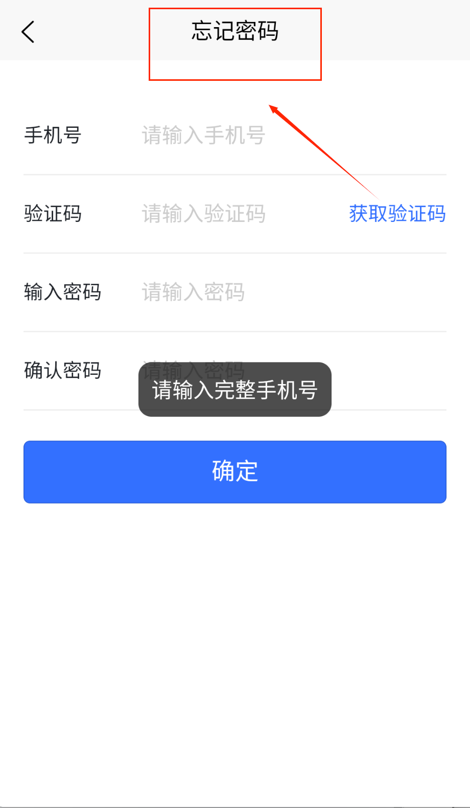4、 万一密码忘记了也别急。在忘记密码页面,在“手机号”框输入你注册时用的号码,点“获取验证码”按钮收短信,把验证码填到“验证码”框里。