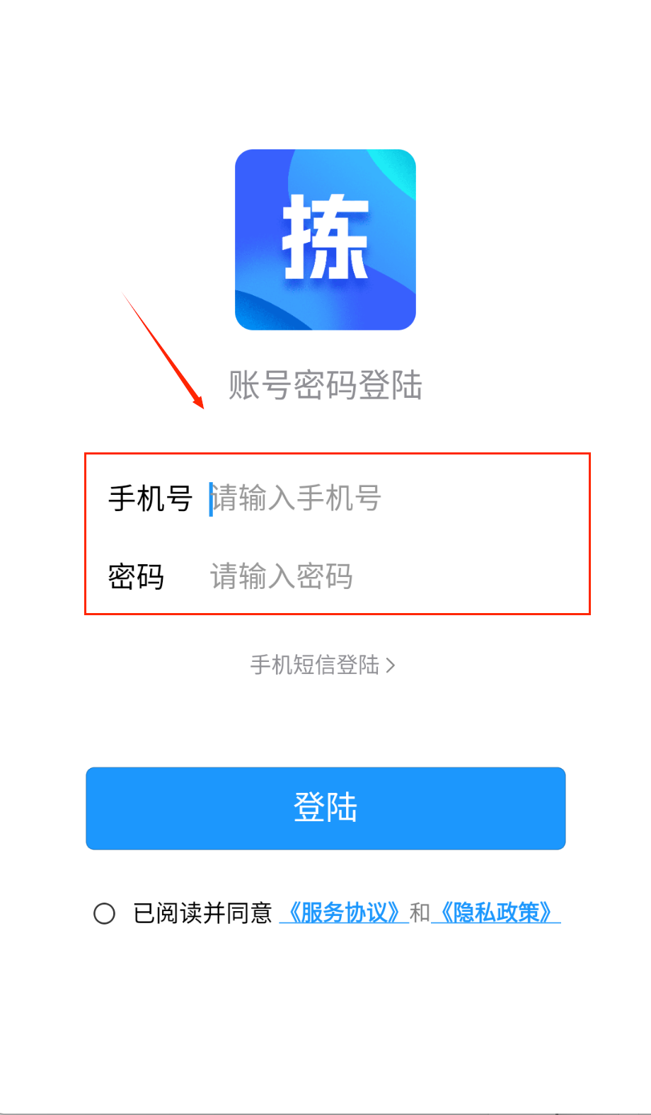 2、 如果你想用账号密码登录,就在第一个标着“手机号”的框里输入你的手机号码,在第二个标着“密码”的框里输入密码。