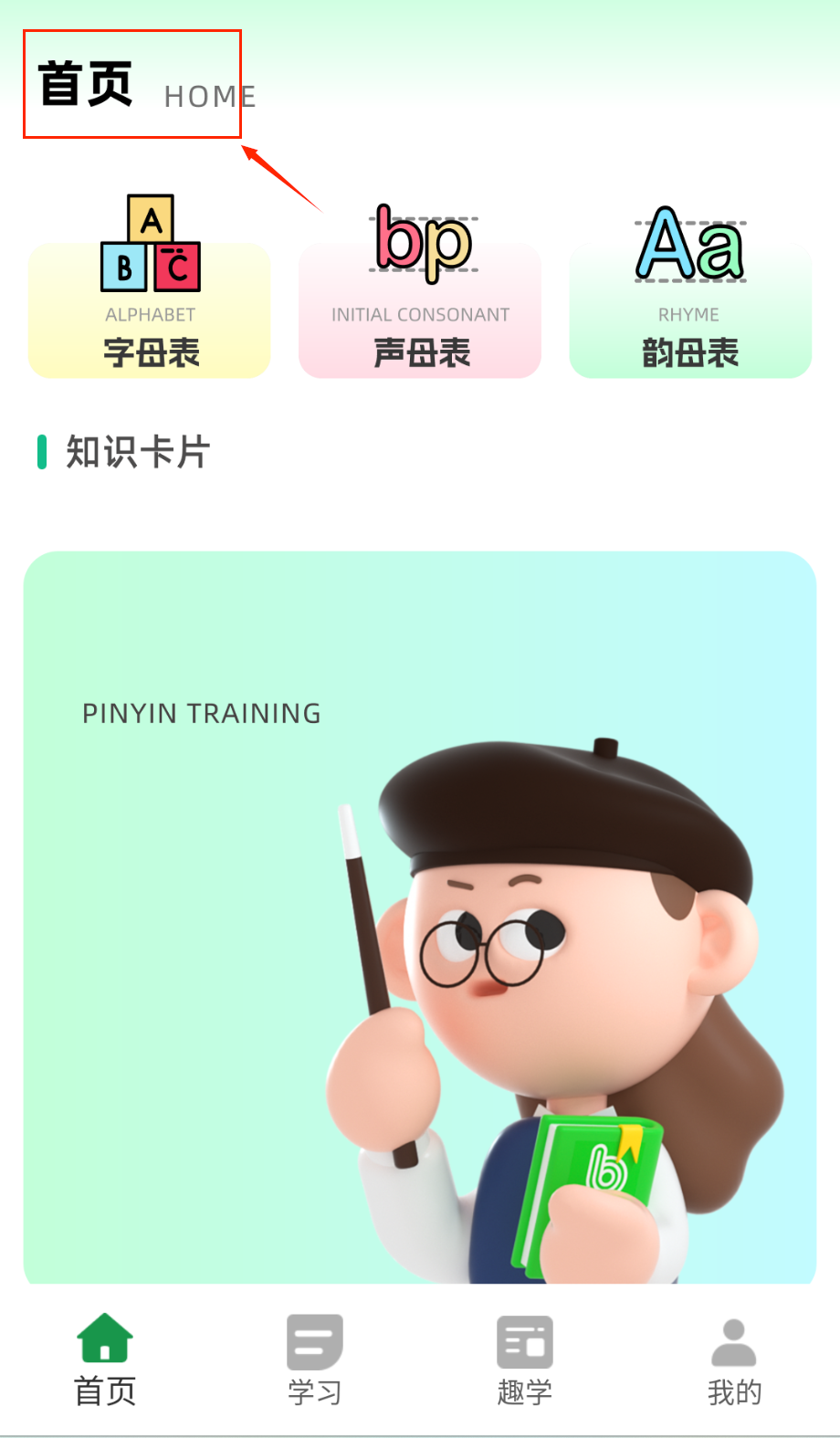 2、进入字母表板块可系统学习声母与韵母,每个字母配有标准发音示范与书写动画,孩子可通过跟读与临摹加深记忆,夯实拼音基础。