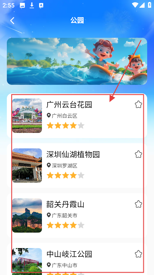 2、进入【公园】分类,能看到广州云台花园、深圳仙湖植物园等多个公园,选感兴趣的查看详情。