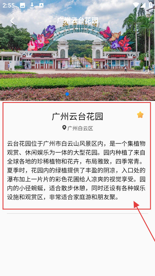 3、点开【广州云台花园】,可看到它的详细介绍,了解景点特色,方便规划游玩行程。