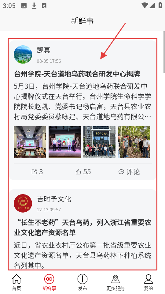 4、切换到【新鲜事】页面,能看到各类新鲜动态,了解身边发生的事,还能互动交流。