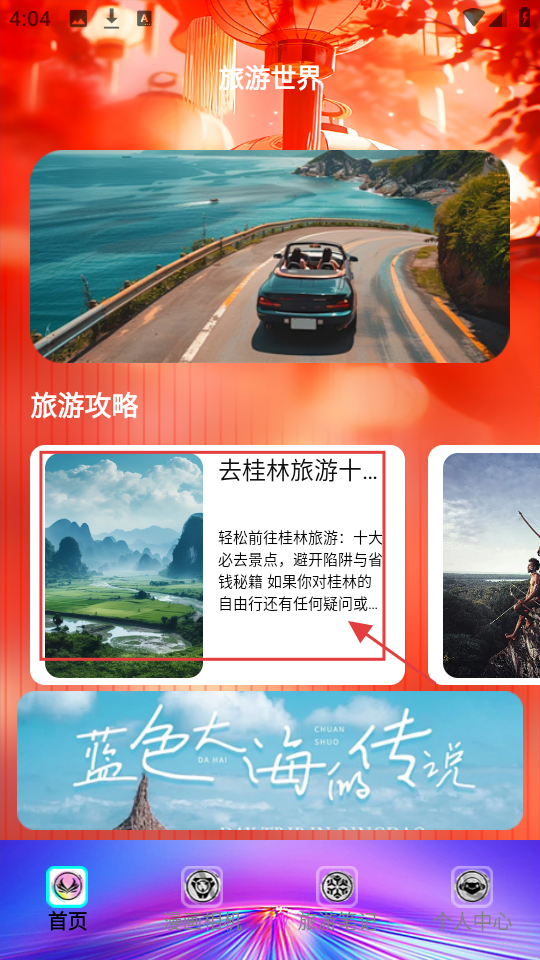 1、首页有【旅游攻略】板块,能看到去桂林旅游等攻略,选感兴趣的,获取旅游tips。