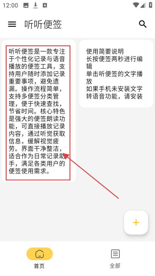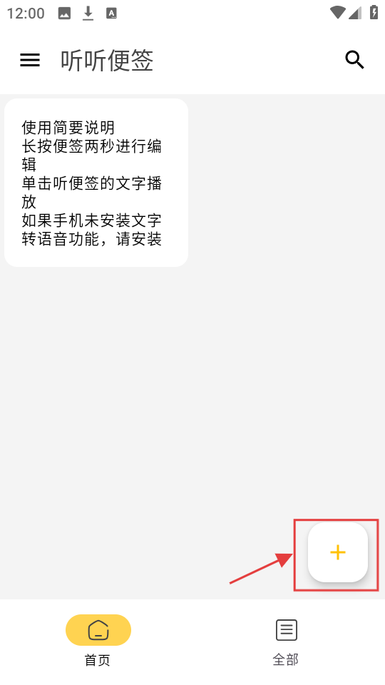 1、听听便签首页有使用说明,想新建便签,点右下角【+】按钮,就能开始记录啦。