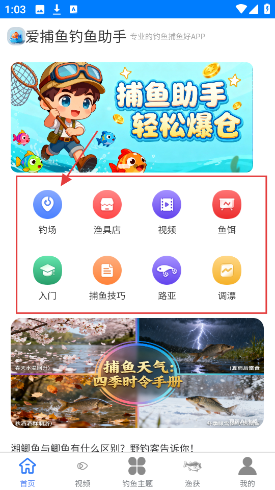 1、爱捕鱼钓鱼助手首页有【钓场】【渔具店】等功能,想找钓点,点【钓场】,超方便。