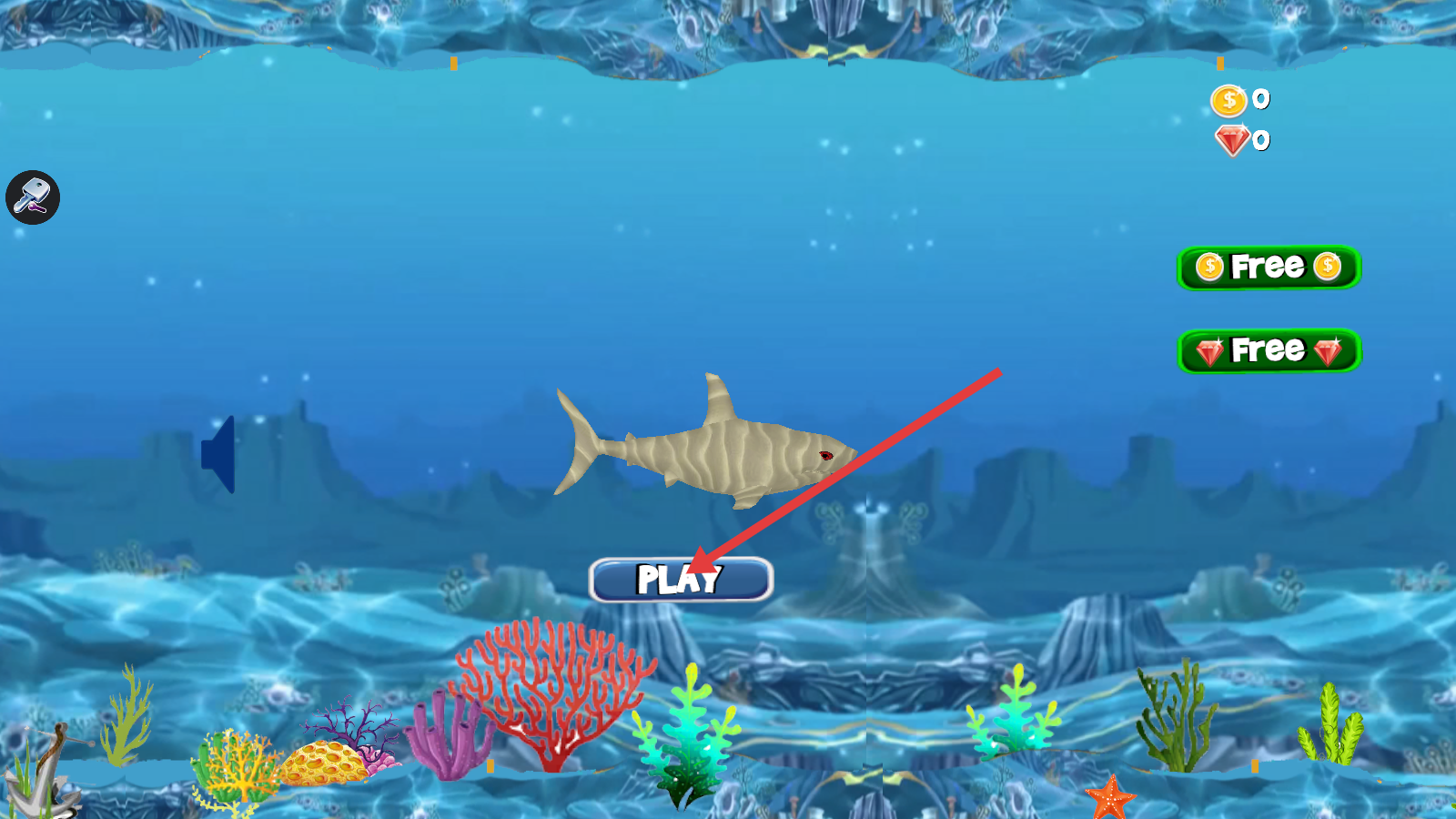 1、进入游戏后,点击【PLAY】按钮开启海底冒险,此时金币和钻石数量均为0,可留意右侧【Free】相关按钮。