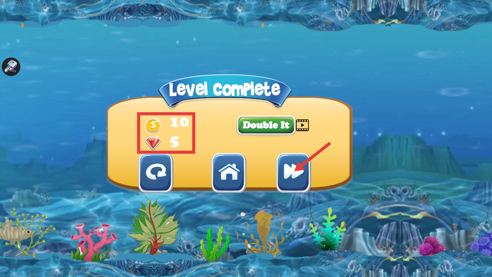 4、关卡完成后会显示【Level-complete】,获得10枚金币与5颗钻石,点击右侧箭头按钮可进入下一关继续挑战。