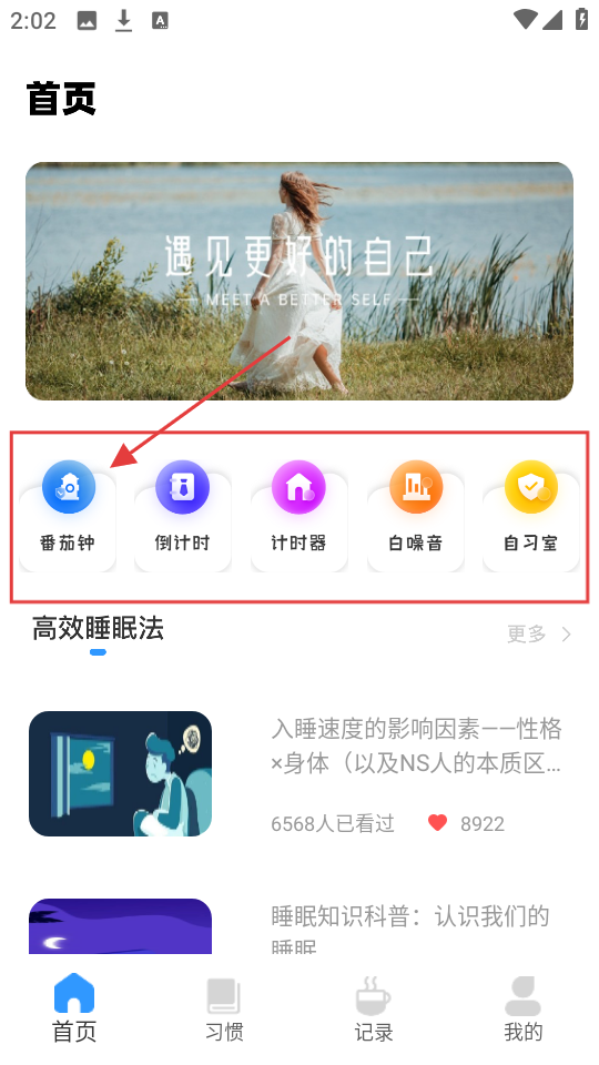 1、首页有【番茄钟】【倒计时】等功能,想专注做事,点【番茄钟】,开启专注模式。