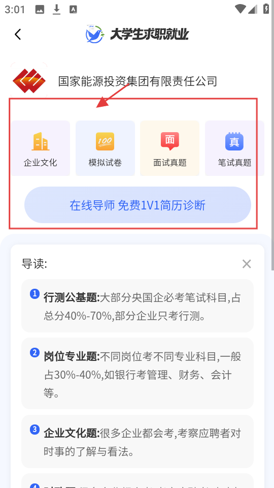 2、企业详情页有【企业文化】【模拟试卷】这些,还能找在线导师做简历诊断,对求职准备超有帮助的。