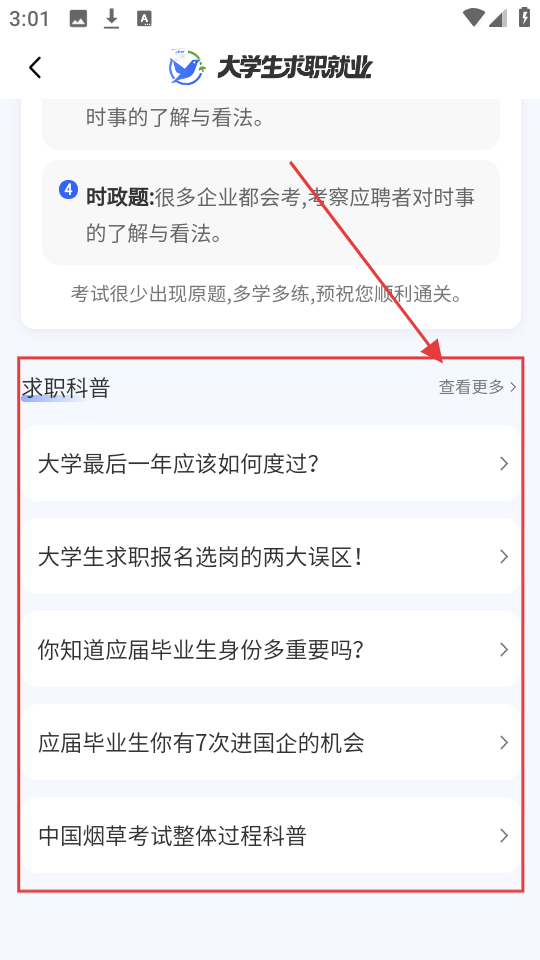 3、页面下方有求职科普呀,要是想深入了解,点【查看更多】,能看到更多超实用的求职相关科普内容。