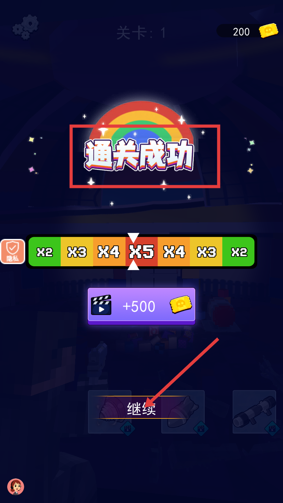 4、成功击败怪物后,界面显示【通关成功】,点击【继续】按钮,可领取奖励并进入后续内容。