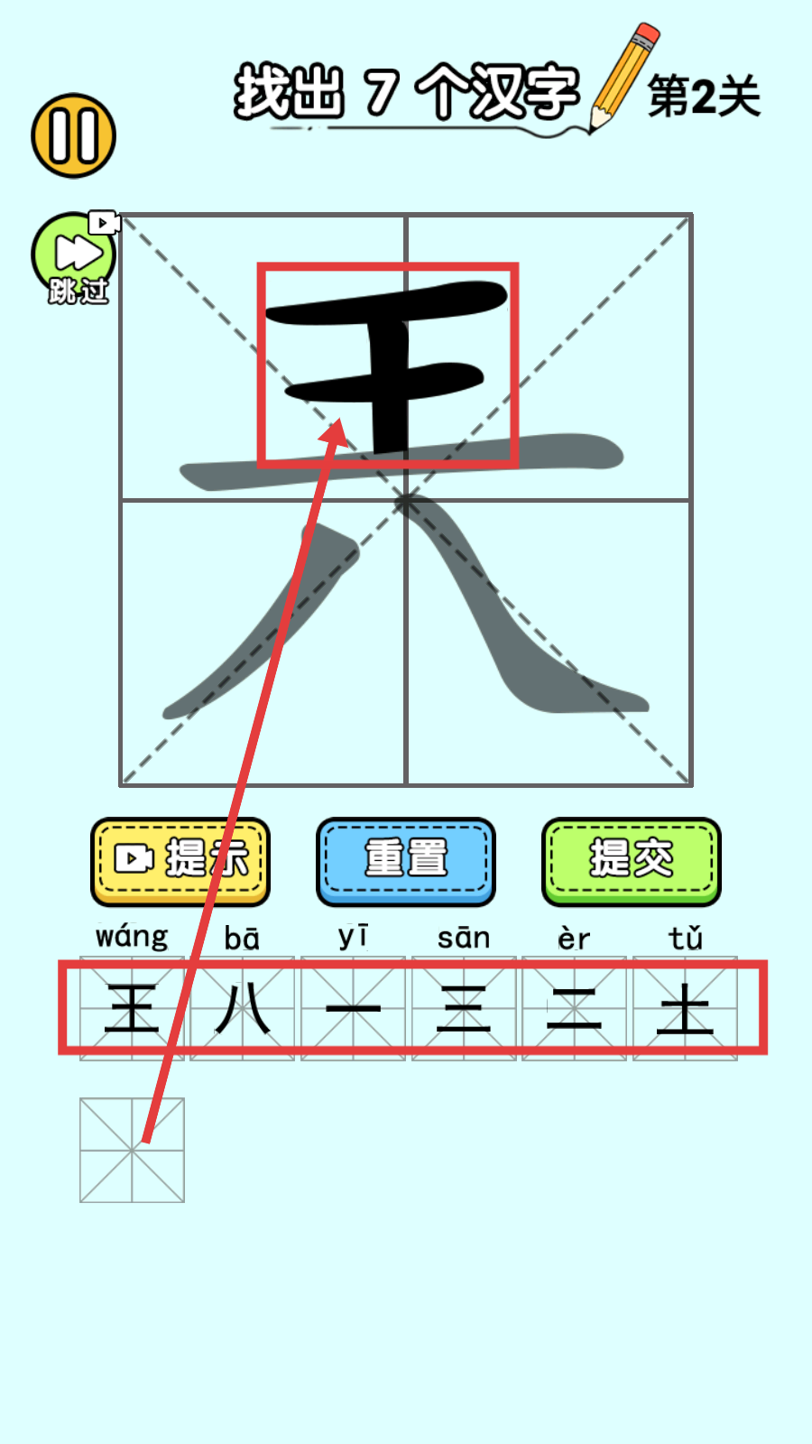 2、在“找出7个汉字”的关卡中,仔细观察画面里的文字部件,像“王”“八”这类明显的汉字可优先找出。