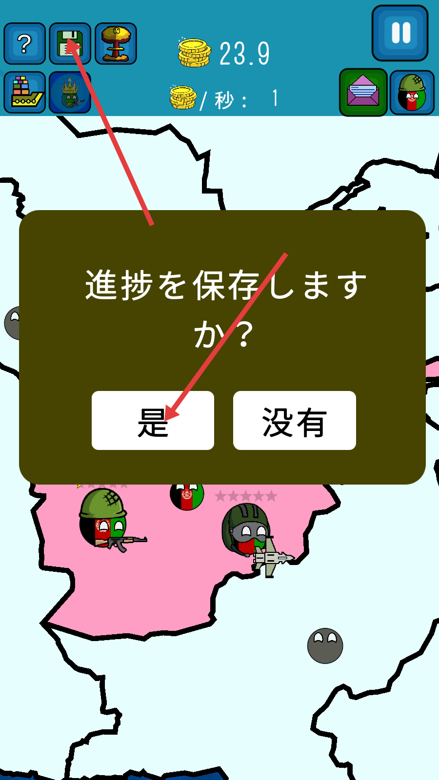 4、点击保存图标后,弹出“進捗を保存しますか?”提示框,选择【是】按钮,即可保存当前游戏进度。