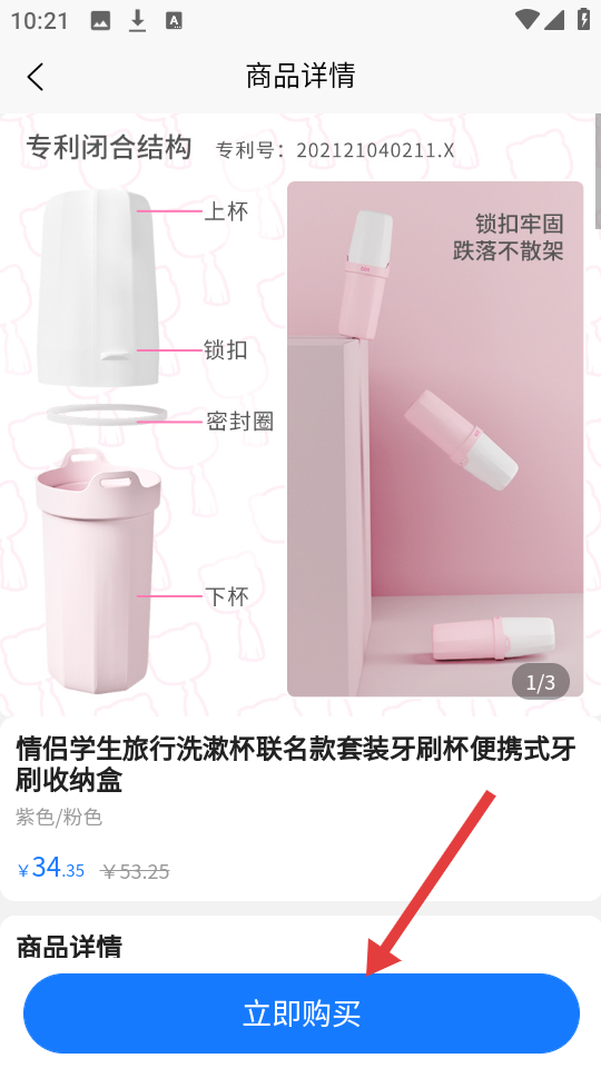 3、商品详情页能看到商品的专利结构等信息,要是觉得不错,点【立即购买】,去确认订单。