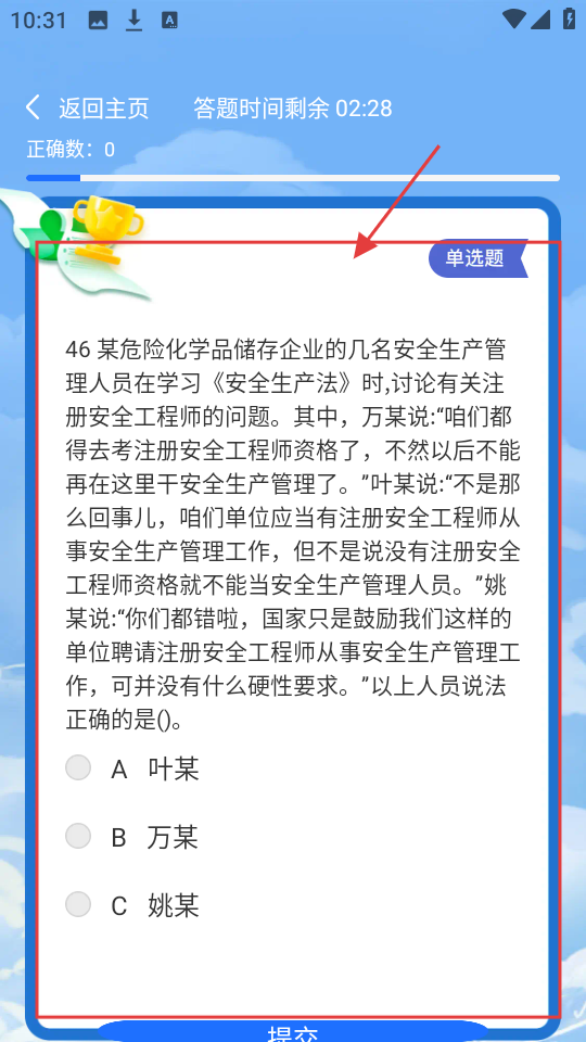 3、答题时仔细读题,像这道单选题,结合知识分析选项,选出正确答案,提升答题正确率。