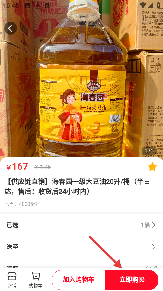 3、商品详情页能看到价格、销量,确定要买的话,点【立即购买】,就进规格选择界面啦。