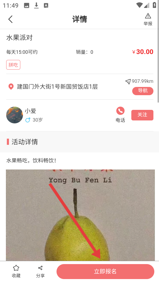 3、活动详情页能看时间、地点等,想参加就点【立即报名】,进入报名流程。
