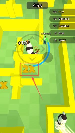 3、然后,利用地图上的增益道具,如“2X”加速道具,来获得竞争优势。