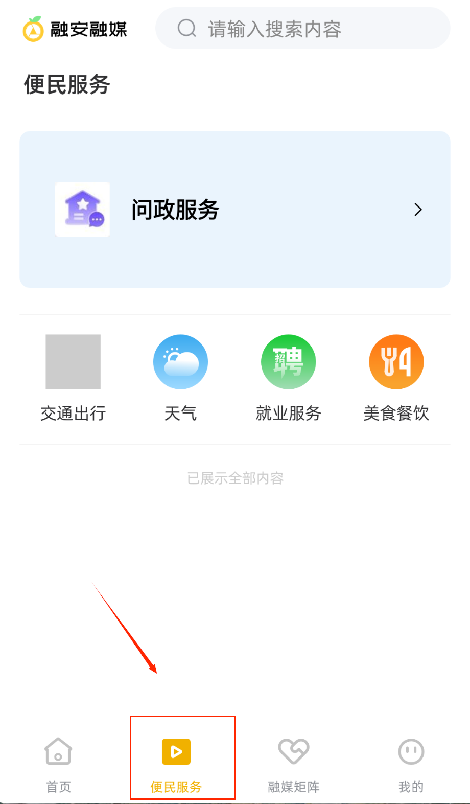 4、通过便民服务板块办理业务或查询信息,使用积分兑换商城礼品,享受本地化生活服务与融媒体矩阵的丰富资源。