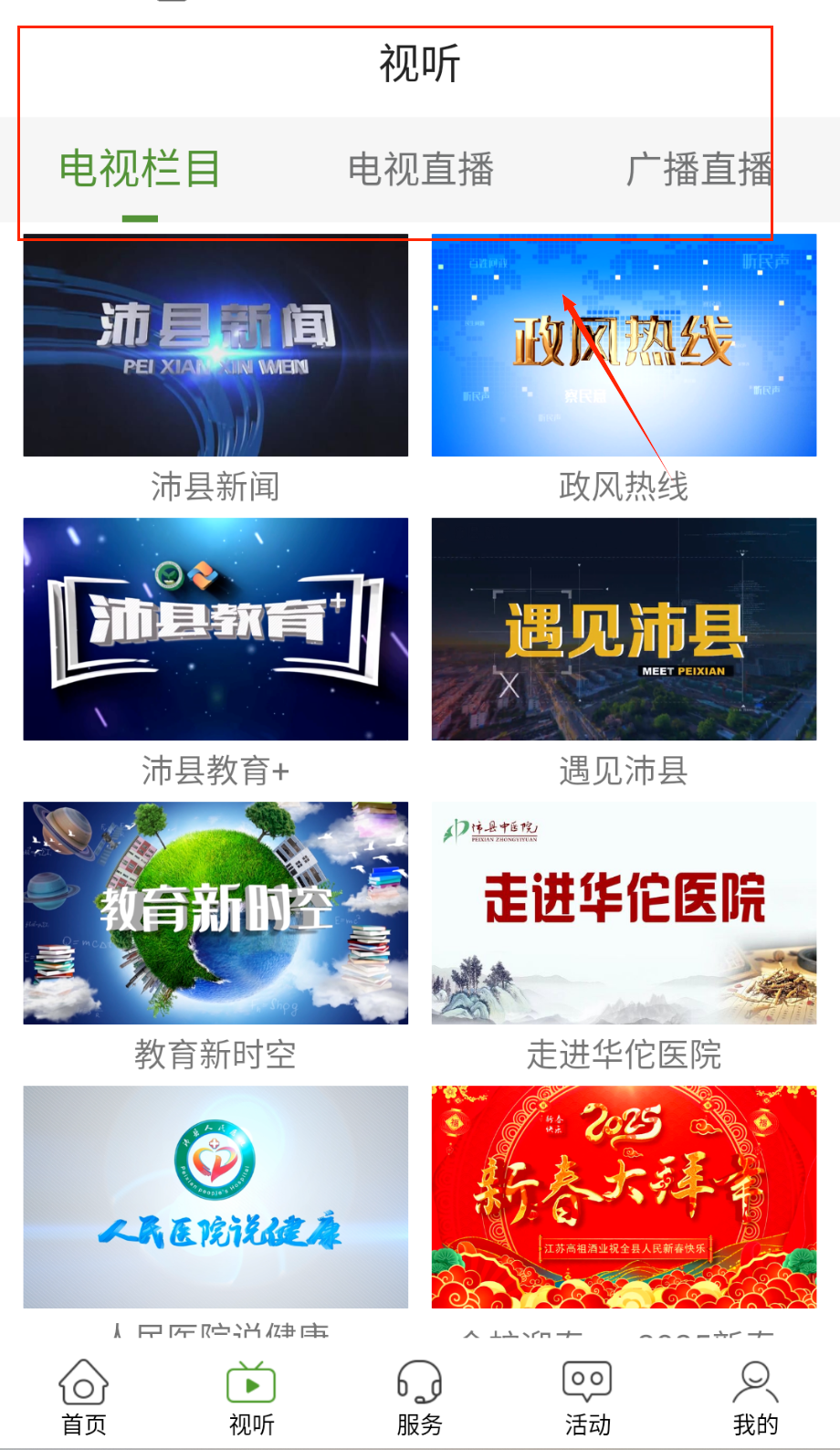 3、在视听板块用户可选择观看电视节目、直播内容或收听广播,以更直观的方式了解新闻与专题信息。