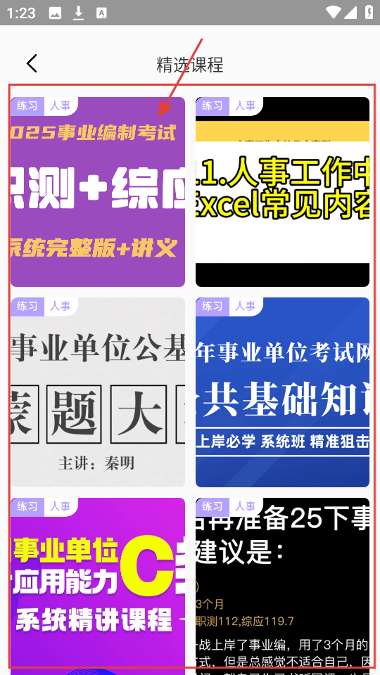4、精选课程页有事业编制考试等各类课程,选感兴趣的课程,开启学习,提升备考能力。