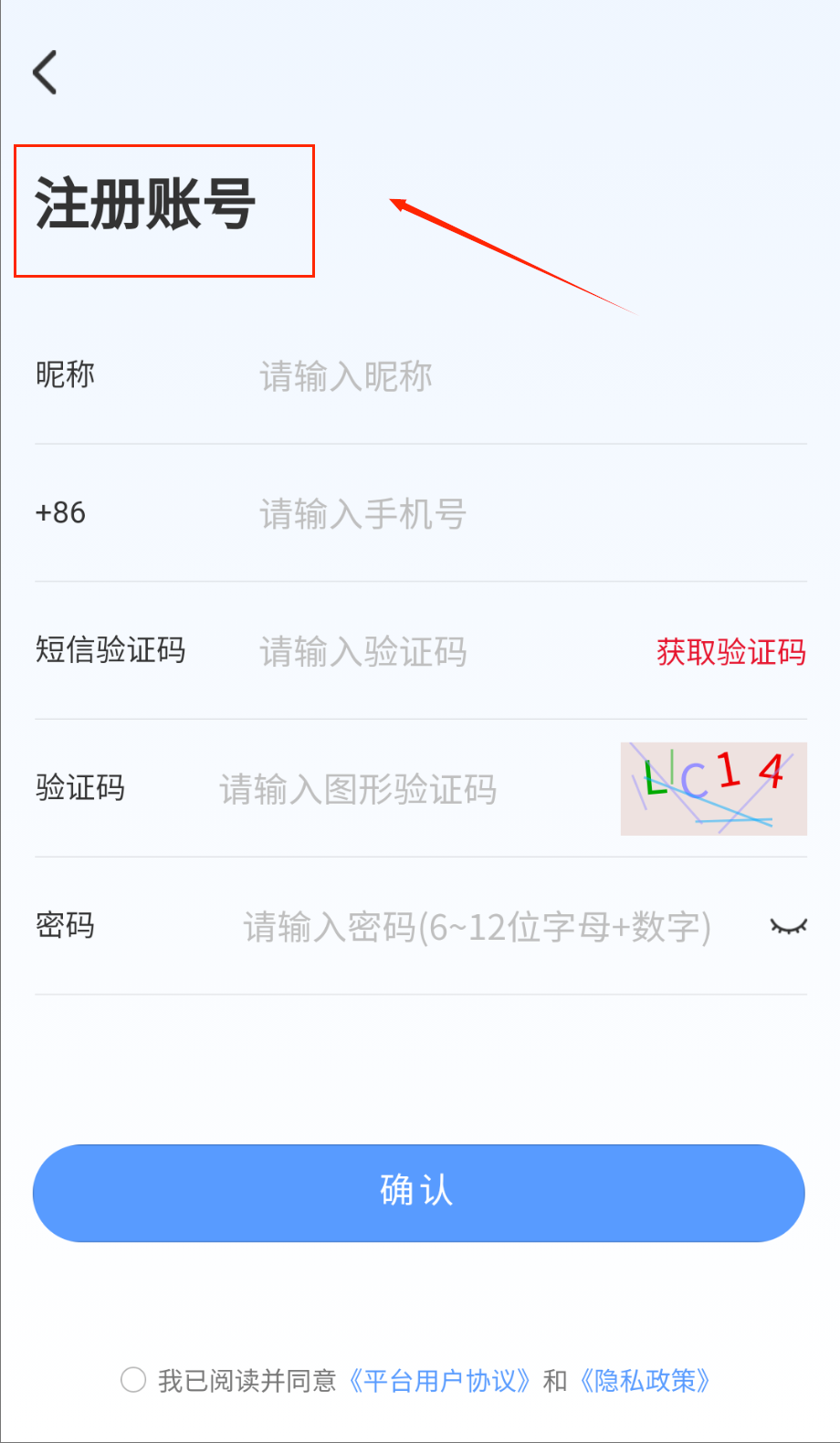 2、 进入注册页面后要按顺序填写昵称和手机号,注意手机号要带+86前缀,获取短信验证码后别忘记还要输入旁边的图形验证码。