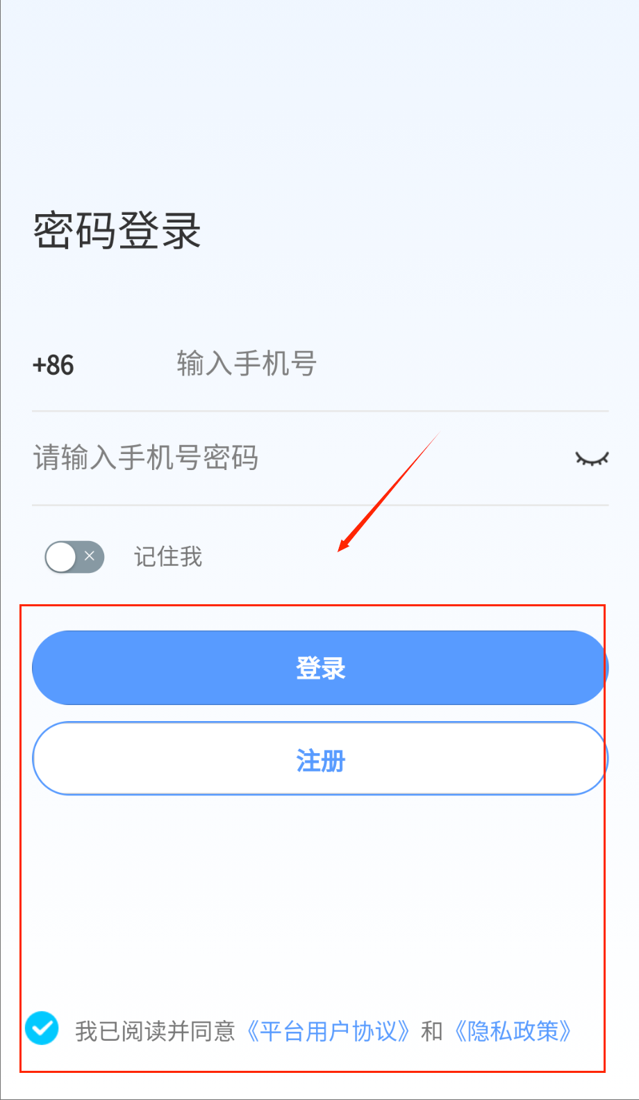 4、 登录时在密码栏右侧有小眼睛图标可以显示密码内容,方便核对输入是否正确,如果勾选记住我选项下次就不用重复输入。
