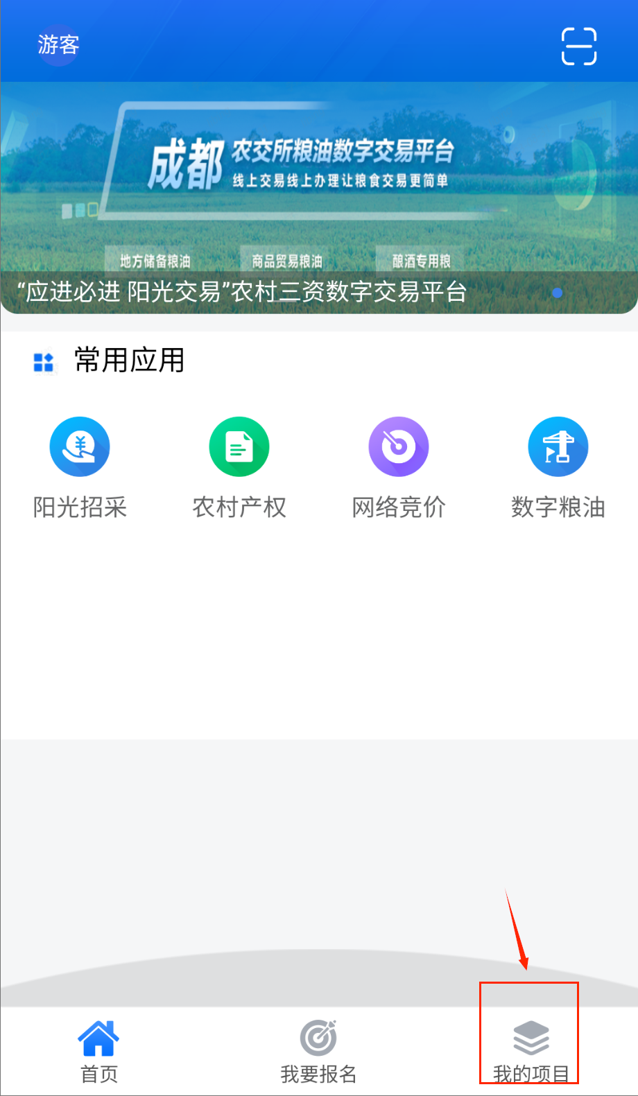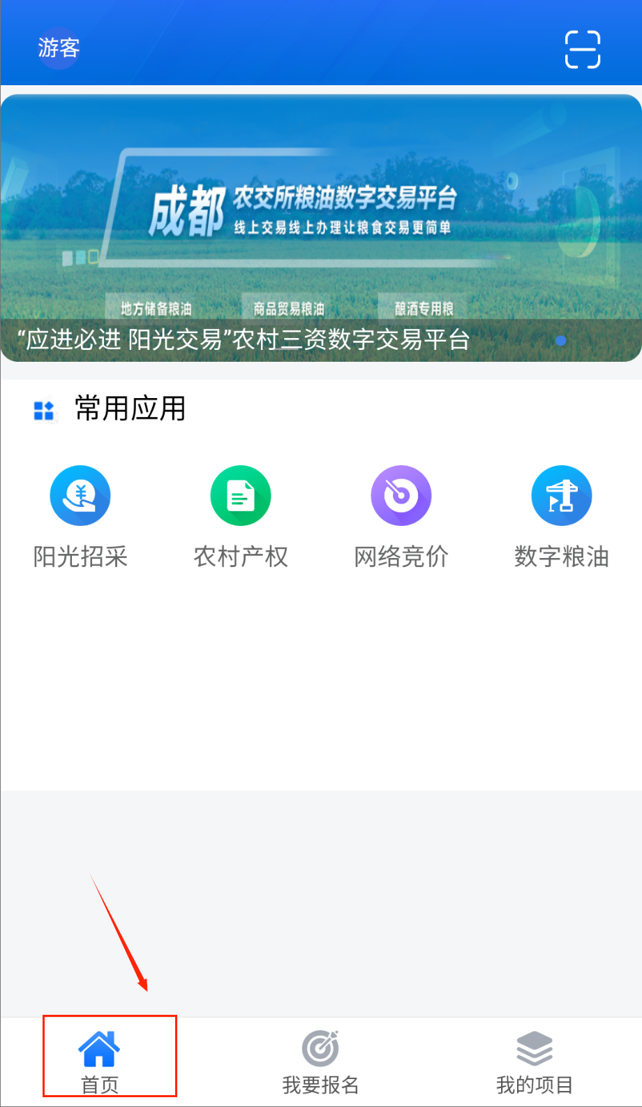1、下载并安装天府农交后完成账号登录,进入首页可浏览系统推荐的交易项目,通过筛选条件如类型、地区或时间快速定位感兴趣内容。