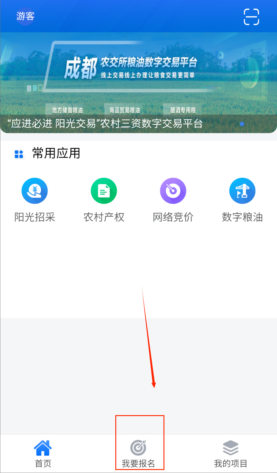 4、报名参与心仪项目并跟踪动态,在个人中心查看已报名项目和成交结果,同时常用功能集中管理使操作更高效。