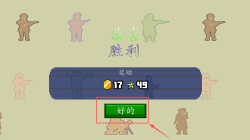 4、如何领取胜利奖励?战斗胜利后点击“好的”,即可获得奖励17+49并返回主界面。