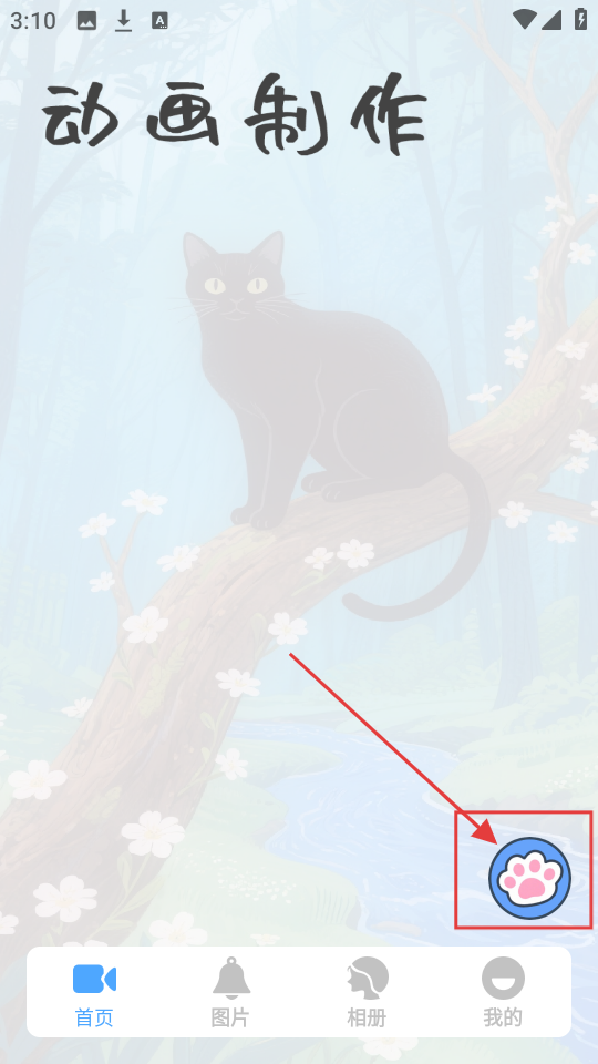 1、首页有可爱猫爪图标,想制作动画,点它进入动画制作设置页,开启创作超棒的。