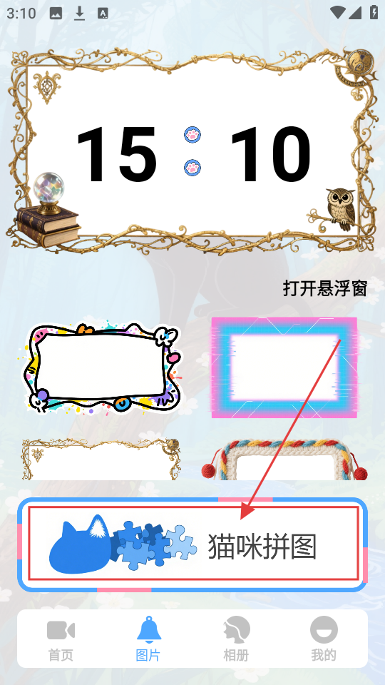 3、图片页有各种装饰元素,还有【猫咪拼图】功能,想玩拼图,点它开启猫咪拼图游戏。