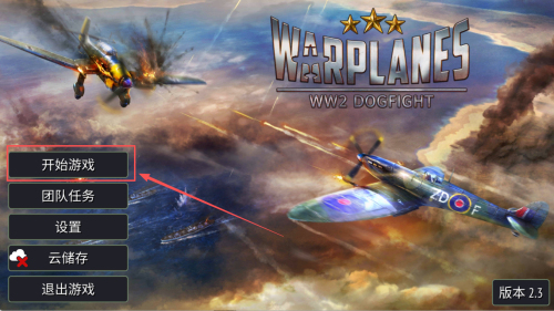 1、如何进入主界面?打开“WARPLANES WW2 DOGFIGHT”,点击“开始游戏”即可进入主菜单。