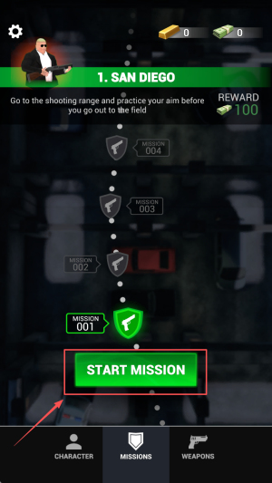 1、如何进入关卡?点击“1.SAN DIEGO”查看奖励,再按“START MISSION”即可开局。