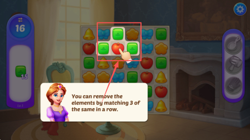 3、然后,通过匹配三个相同的元素来消除它们,这是游戏的基本玩法。