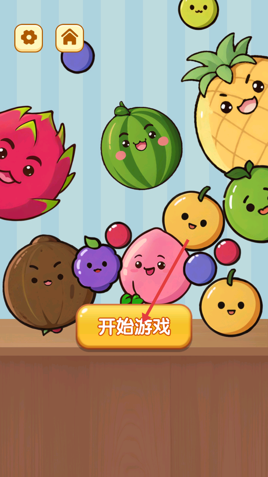 1、点击【开始游戏】按钮,进入满是可爱水果角色的游戏界面,开启游玩。