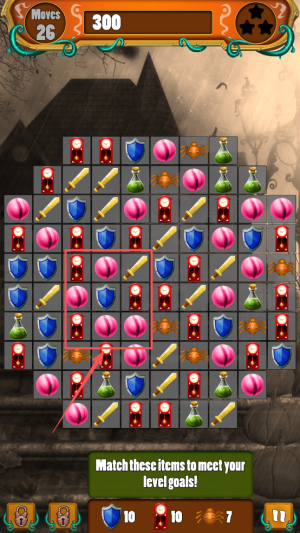 3、然后,进入游戏关卡,通过匹配三个相同的物品来消除它们。