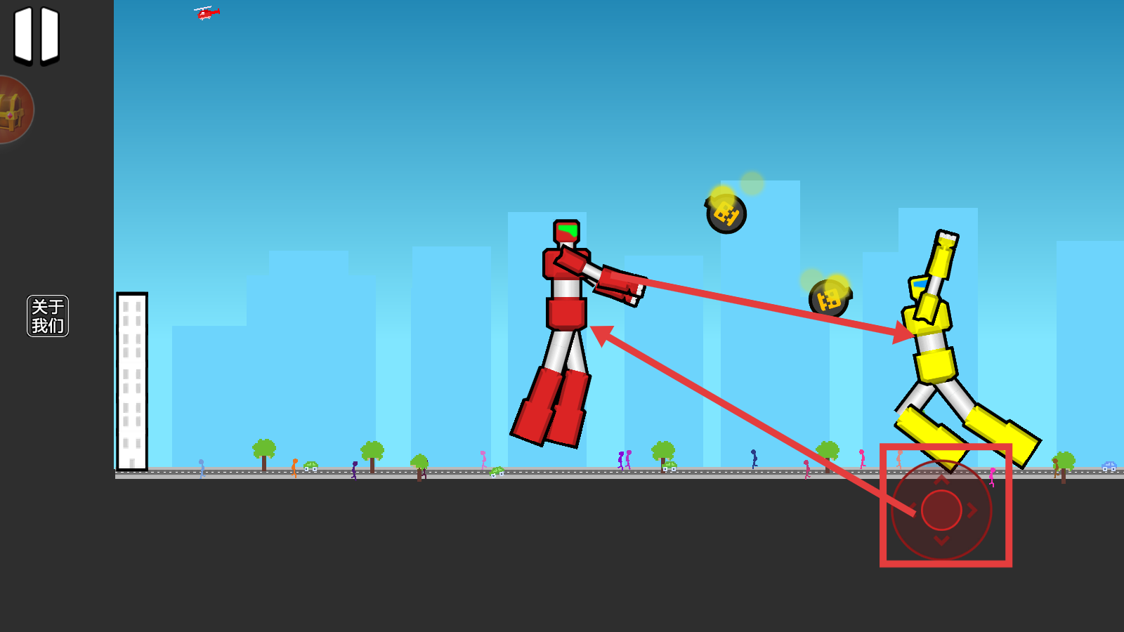 1、机甲驾驶体验:操控火柴人驾驶的巨型机器人,结合独特驾驶感和动作设计,提供沉浸式机甲战斗和个性化操作感受。