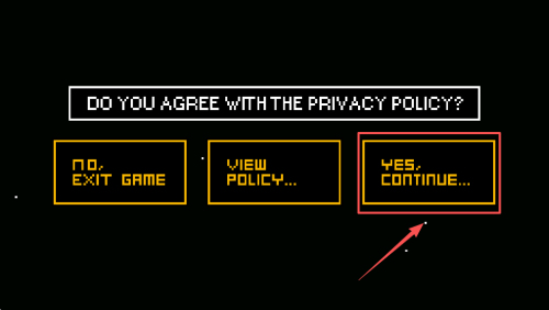 1、首先,阅读隐私政策并点击“Yes, Continue...”按钮以同意并继续游戏。