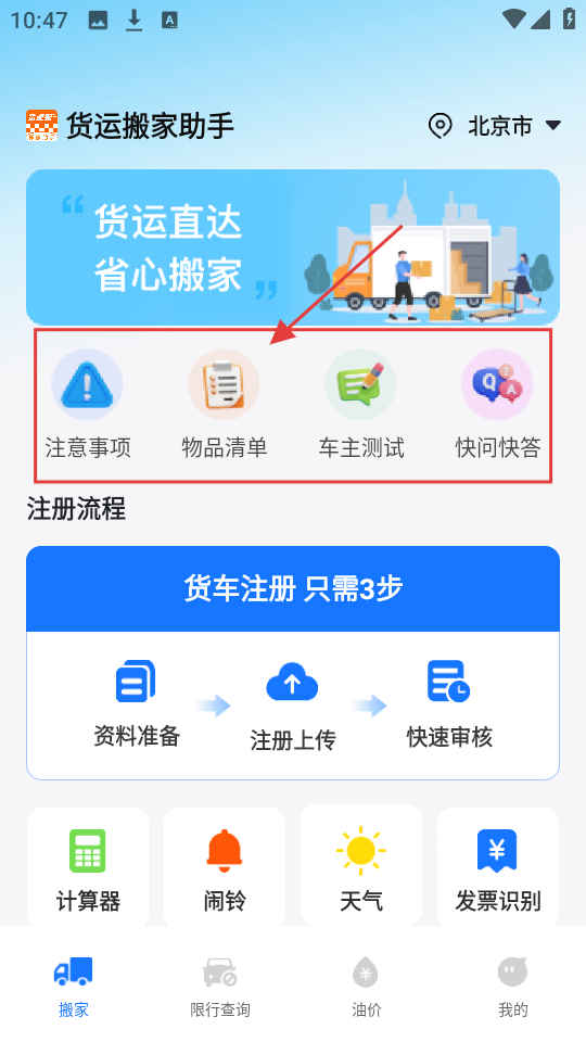 货运搬家助手是一款权威便利的货运平台软件,专注于为货主和车主提供高效的车货对接服务,帮助提升日常货运效率。支持在线实现车货快速匹配,增加车主接单量,让接单更便捷。提供车主测试功能,通过答题提升专业水平,保障运输高效性。实时更新油价和限行信息,便于规划行程,同时汇集海量车型供查询,助力高效配货搬家,适合货运从业者和有搬家需求的用户使用。