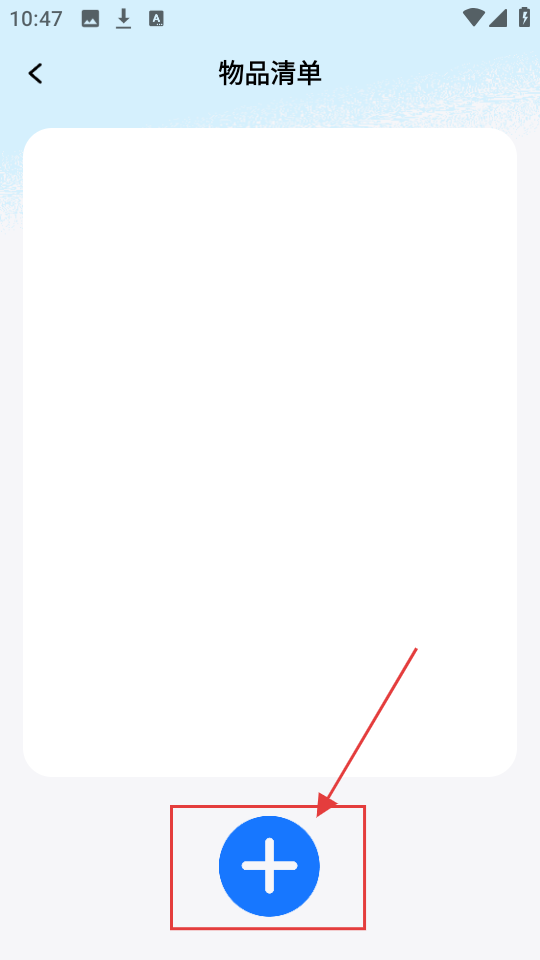 2、到了物品清单页面,想添加物品的话,点一下底部蓝色的【+】按钮,就可以开启添加物品的操作啦。