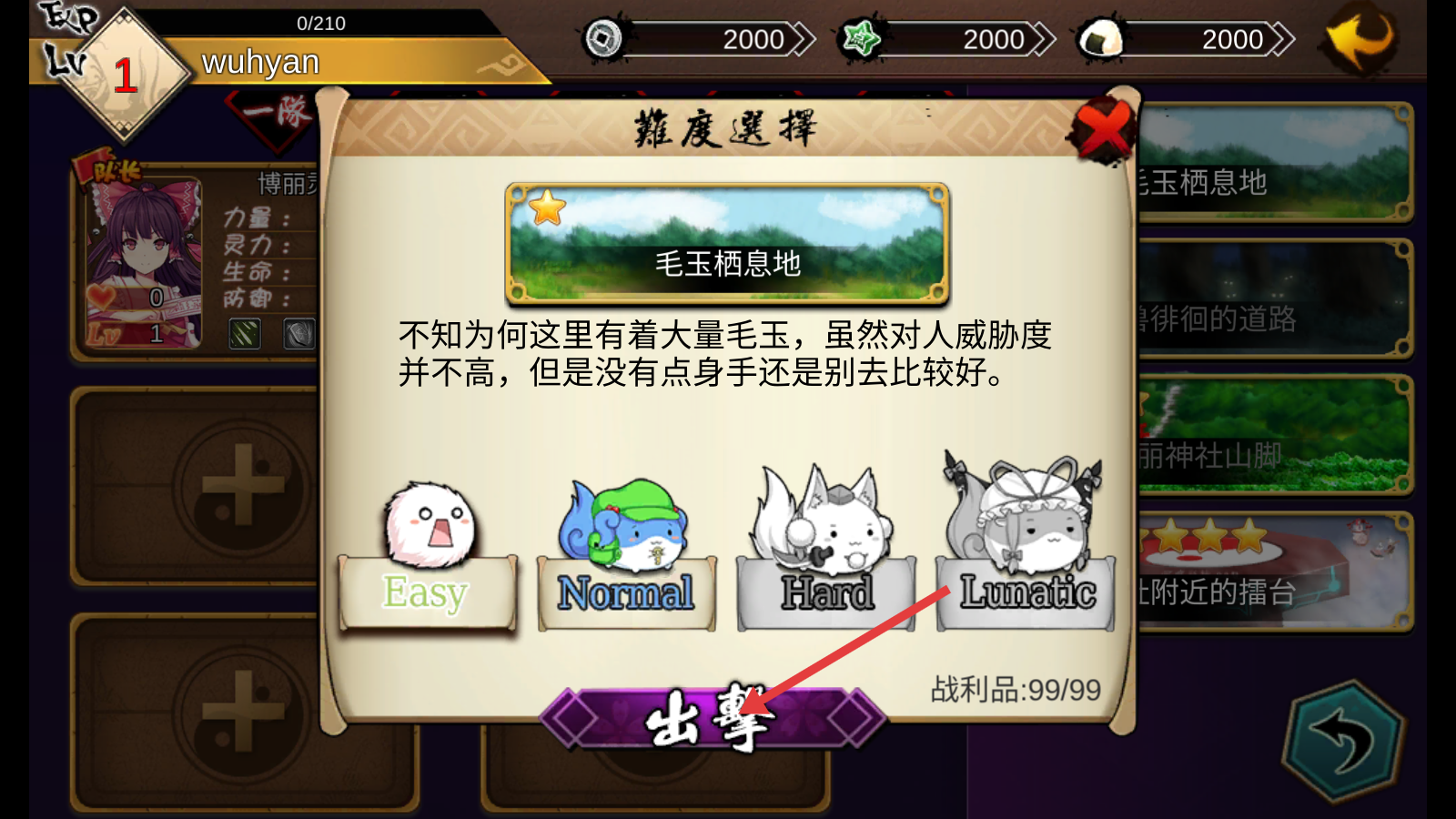 1、进入“毛玉栖息地”关卡,选择合适难度后,点击【出擊】,开启与毛玉的战斗冒险。