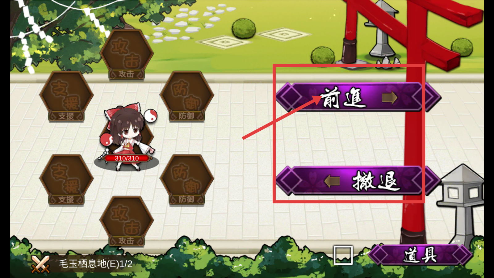2、战斗准备阶段,根据情况选择【前進】推进战斗,或【撤退】保存实力,灵活决策助力战局。