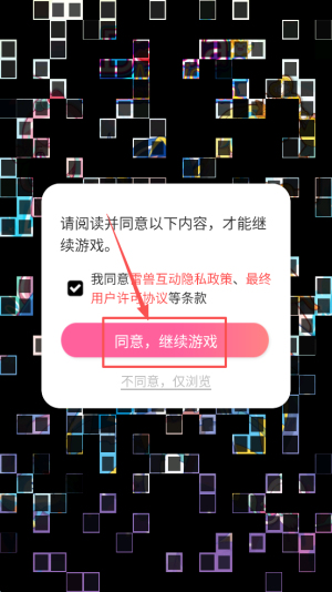1、首先,阅读并同意隐私政策,点击“同意,继续游戏”按钮以进入游戏。